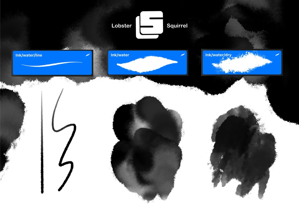 This pack includes 6 unique custom brushes designed to achieve a realistic, yet digital, ink wash effect. For use in the Procreate app.