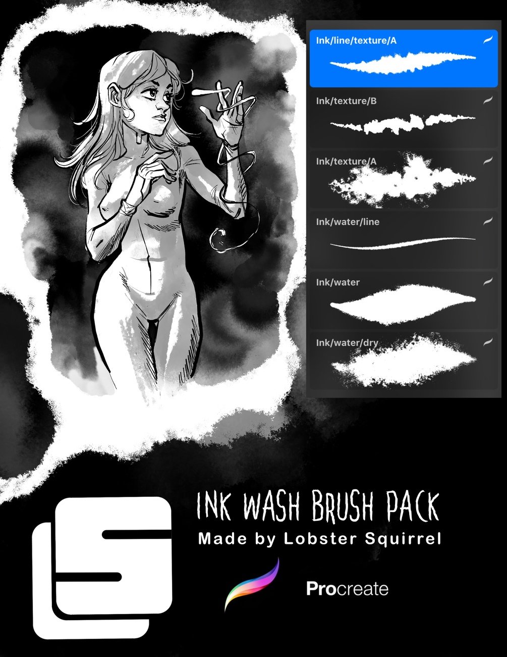 INK WASH BRUSH PACK for Procreate.